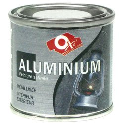 Pot de 60 ml Séchage en 1 h. Peinture satinée décorative, aspect aluminium pour la décoration ou la rénovation de vos objets, meubles, menuiserie... Pour l'intérieur ou l'extérieur. Formule au solvant. Fort pouvoir couvrant. Rendement : 8 m²/ L Prêt à l'emploi. A utiliser sur fers, bois, plâtres, cartons, plastiques, cuivre, cuirs… A appliquer au pinceau en deux couches. Résiste aux chocs et aux rayures.